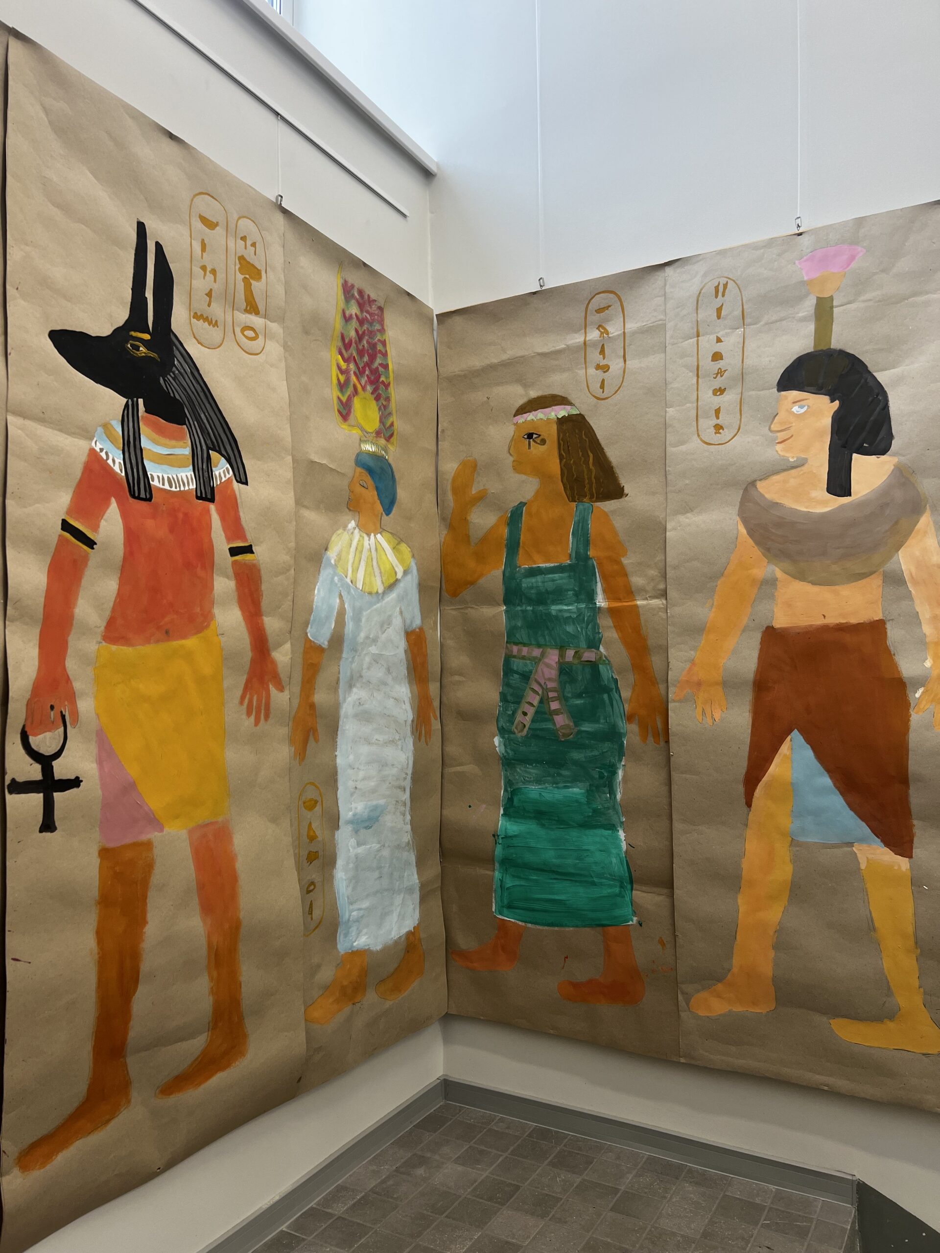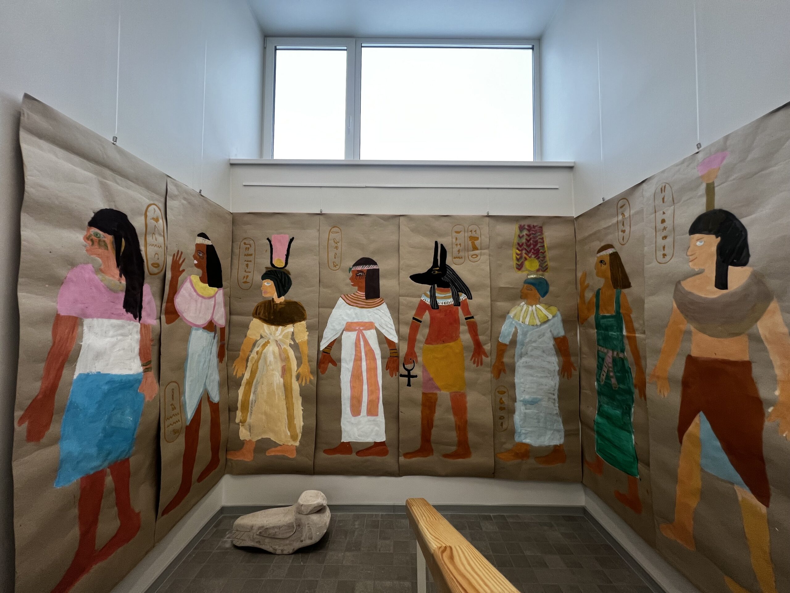 Väljapanekul on näha noorte maalitud Egiptuse temaatilisi töid, näiteks jumalad Anubis ja Ra. Samuti on väljas Egiptuse anumatega natüürmordid ning Rooma seinamaalidest inspireeritud puuviljaanumad. Näha saab ka Vana-Kreeka vaase, mis on tehtud graafikatehnikas. Lisaks on kujutatud kasse, templeid. Gladiaatorite võitlejatüüpe piktogrammidena. Ootame kõiki näitusele!