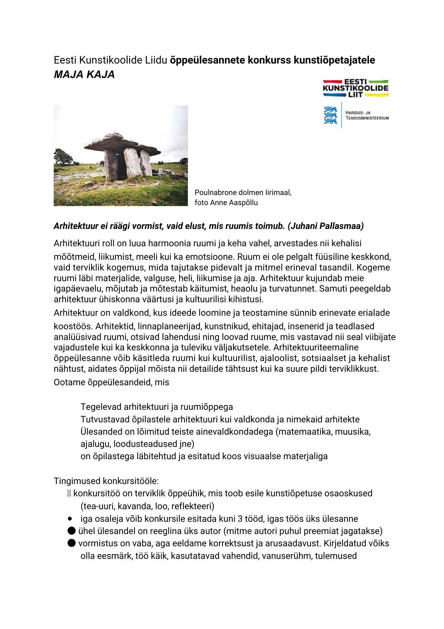 Märjamaa Muusika- ja Kunstikool kutsub taas kunstiõpilasi osalema kujutava kunsti biennaalil ÜLLATAV LEID 2026 teemaga LOGELEMISE LOOVUS.Seekord kutsume üles noori mõtisklema selle üle, millist aega